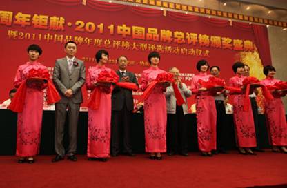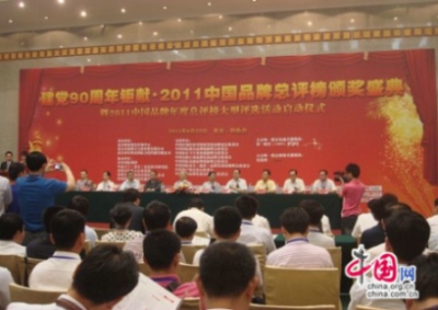 由“今日财富报社”、“财经”、“中国品牌建设协会”等权威机构联合主办的“建党90周年钜献?2011中国品牌总评榜颁奖盛典”在各主办方的共同努力及社会各界同仁的大力支持下于2011年6月21—23日在北京?钓鱼台隆重召开。