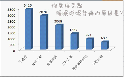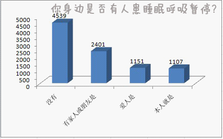调查结论:患有睡眠呼吸暂停疾病的人数与睡觉过程中出现打鼾的人数基本持平,说明打鼾者基本也都是睡眠呼吸暂停疾病患者。