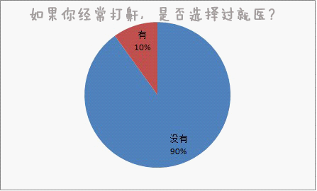图表解析:9成网友对于睡眠呼吸暂停都不会选择就医,只有1成网友会比较积极的找大夫。