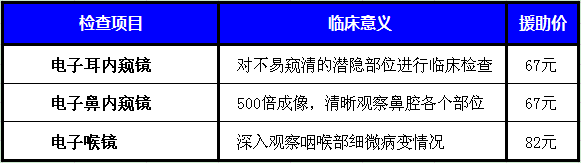 3、 较好劳动者耳鼻喉内窥镜检查费援助50%